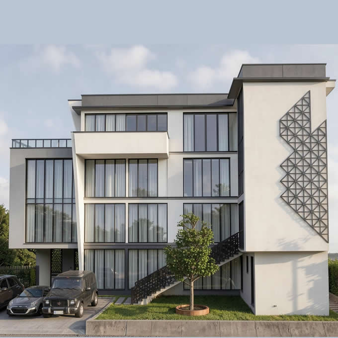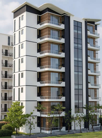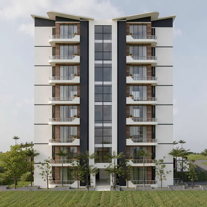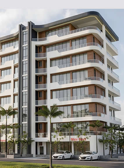- Features: 1 BQ, Led External Light, Elevator, Open Terrace, Visitors Reception, Gym, Swimming Pool, Mini Mart, State of the Art Designs